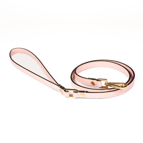 Calfskin nappa leather leash with brass lock worked with gold plating. Perfect to combine with all collars and harness.